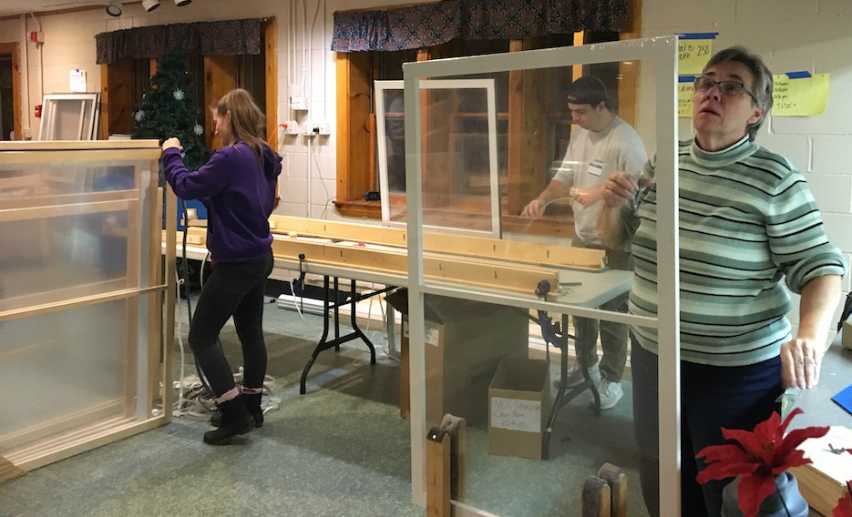 Saint Joseph’s College students, faculty, and staff coordinated with several community organizations and volunteered to build 172 insulating window inserts for nineteen qualifying families in Windham, Standish, Casco, New Gloucester, Westbrook, and Raymond, Maine.