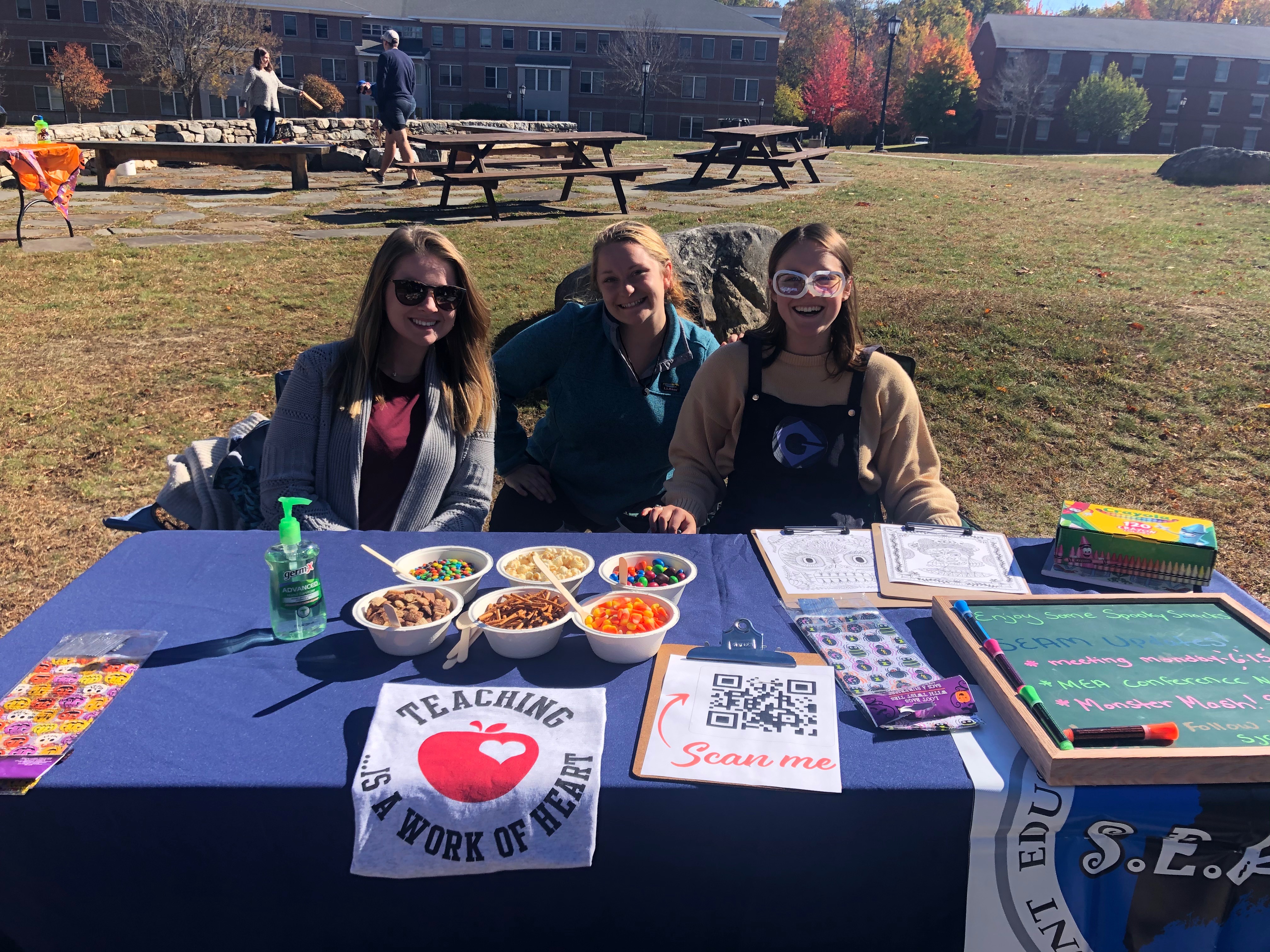 The Student Education Association of Maine (SEAM) is a group of elementary ed., secondary ed., physical ed., and special ed. students who are dedicated to helping local communities. Every year members volunteer time and service to several schools; most recently painting the cafeteria and gym at Marshwood Middle school during the 10th annual Day of Caring. In addition, our club hosts events for children like Trick-or-Treat night and Dr. Seuss Day. SEAM provides limited Maine Education Association (MEA) student memberships which provide access to local professional development conferences. Members also organize the Senior Education Pinning Ceremony for education graduates in April.