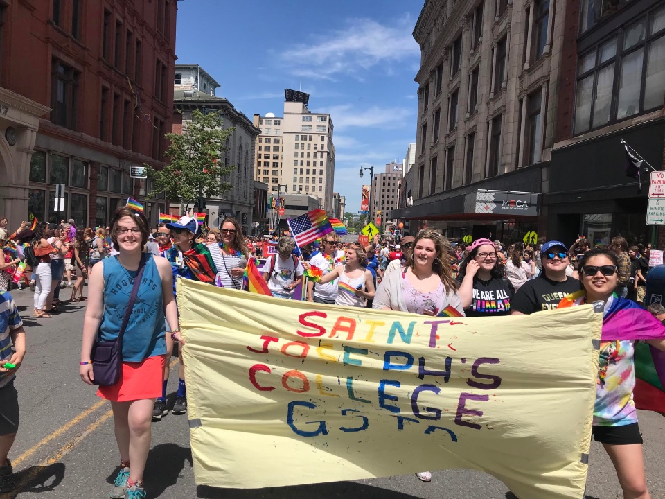 This year’s Pride Festival commemorated the 50th anniversary of the Stonewall riots, a series of demonstrations that occurred in New York City in June, 1969, widely considered to have sparked the contemporary LGBTQ+ rights movement in the United States. According to organizers, this anniversary, combined with increased political tensions surrounding LGBTQ+ issues likely contributed to the festival’s record turnout. Saint Joseph’s College is proud to recognize our students and faculty who participated in this year’s Pride events.